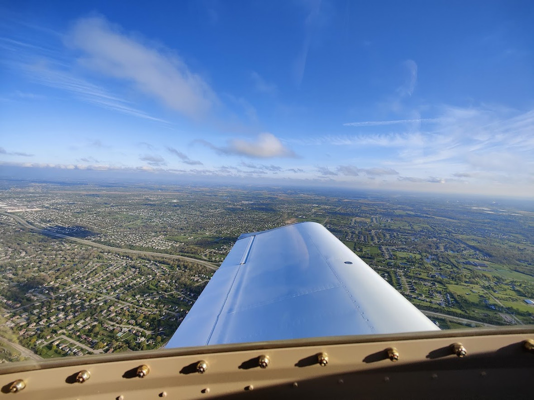 Springfield OH (KSGH)... a nice cool day but windy. I was waiting for the coolness to come back again, since this is just April. 30-minute flight each way but total trip was 8 hours. wheels were up at 8AM. make a day of it and look around and talk to people. pizza was $9 and almost ready when I walked in the door. call 15 minutes out so you are not sitting there waiting. drink a coffee here and there, look at art, eat chocolate and ice cream. lots of fun. a very good day.