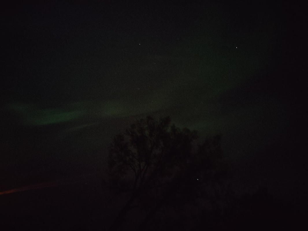 the aurora borealis was amazing. much better than the cell phone camera shows. feet inside the tent, just laying back and watching natures light show, totally free!