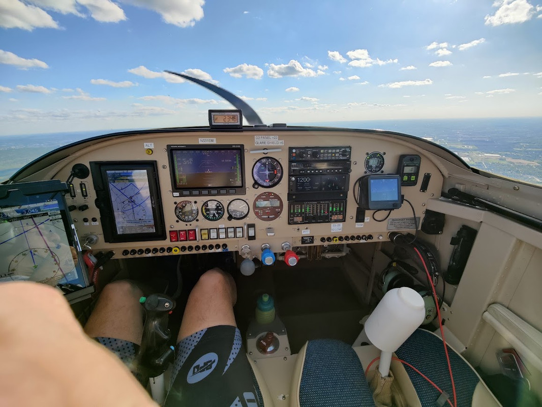 I didn't make 75 miles today, but I did make 65. I got a slow start because during my pre-flight I found a metal shim coming out of my prop hub. that took about an hour to decide what to do and then fix it. when I landed, I checked to see if my prop was still there, yep. :)