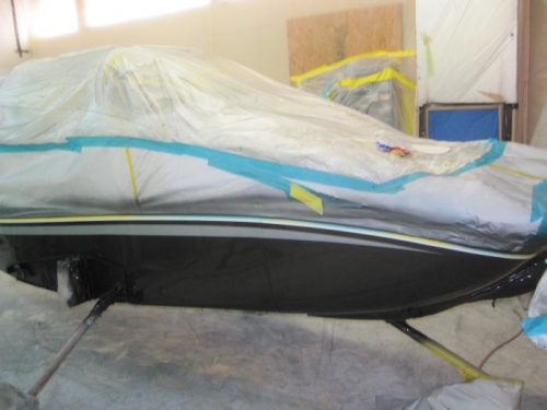 The night before surgery, Janice and I were at the paint shop taping the striping for the right wing. The end result looked like a mess, but was functional.
